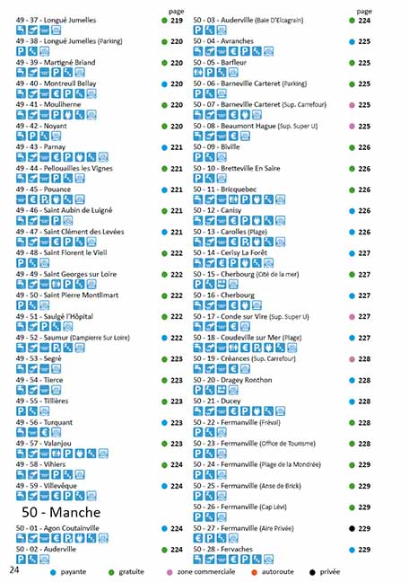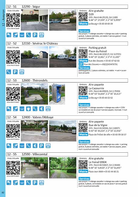 Répertoire de 1279 aires de service :Accès aux visites virtuelles, à l'itinéraire, aux commentaires et aux mises à jour via des code-barres à scanner avec son smartphone ou sa tablette